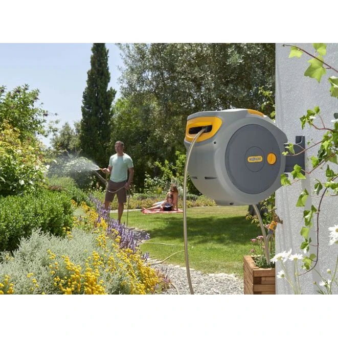 Wall mounted with a 180 degree pivot, allows you to reach every area of your garden