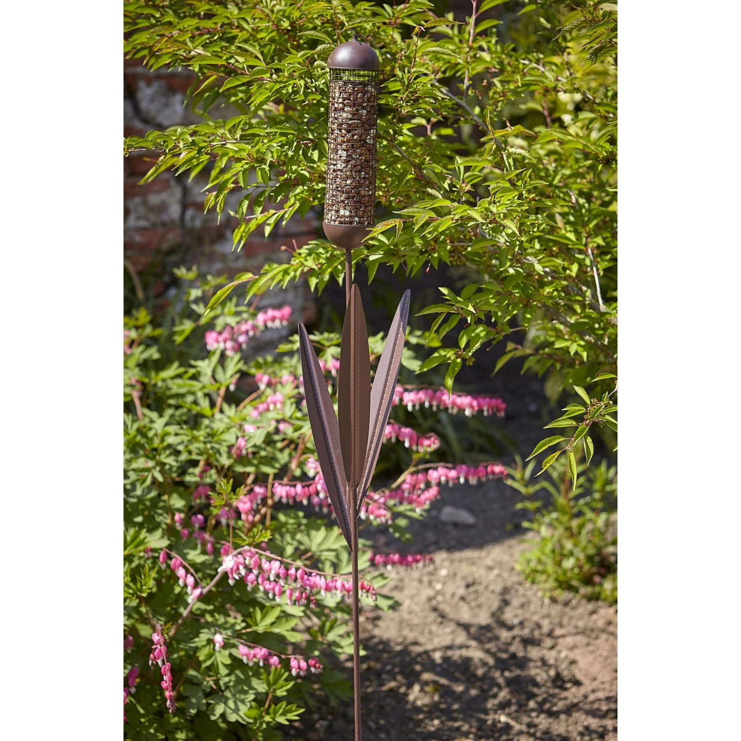 Rustic seed feeder for use in garden borders, simply push into the ground height 150cm. Decorative feeder for the garden.
