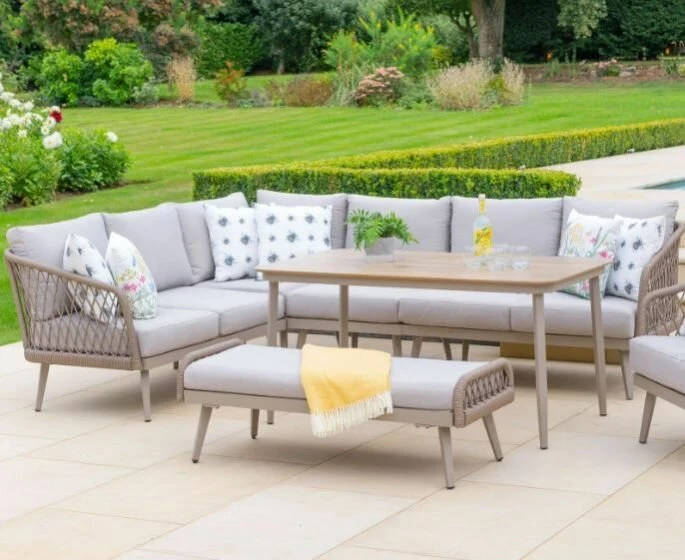 · Our Sarasota range is made from maintenance free EverRope PE rope weave. It looks stunning in this lattice weave design – you’ll think it really is rope! Mottled sand colour EverRope with aluminium taupe frames and HPL wood-effect tops.