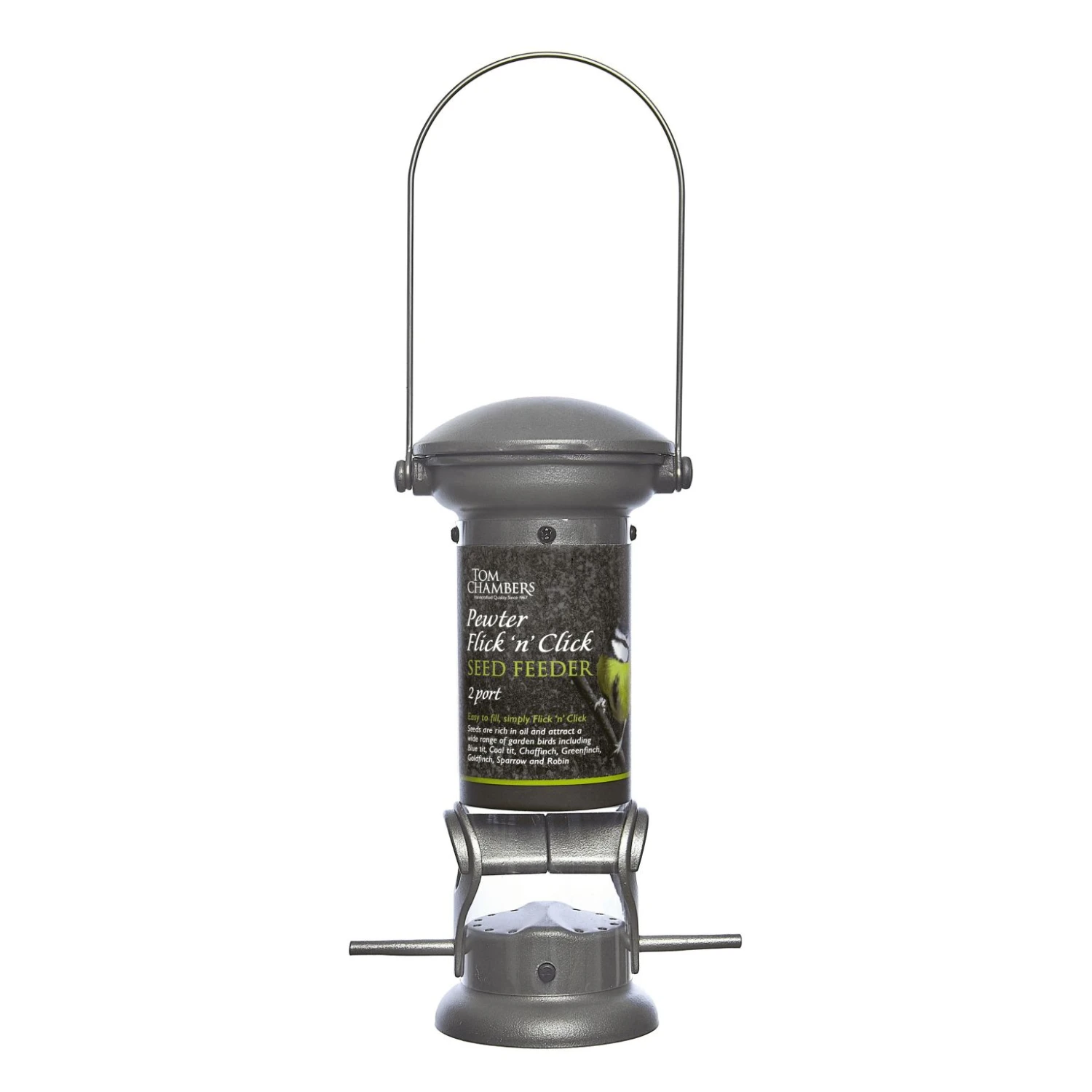 Seed Feeder – 2 Port Pewter Flick ‘N’ Click