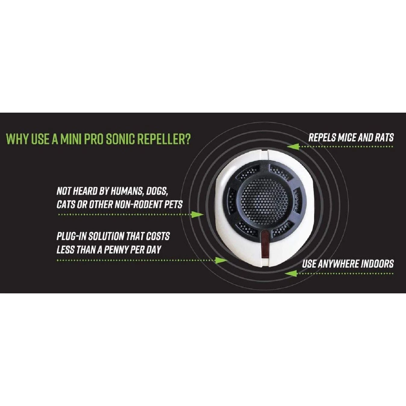 - Pack contains 2 mini pro Sonic Repellers
